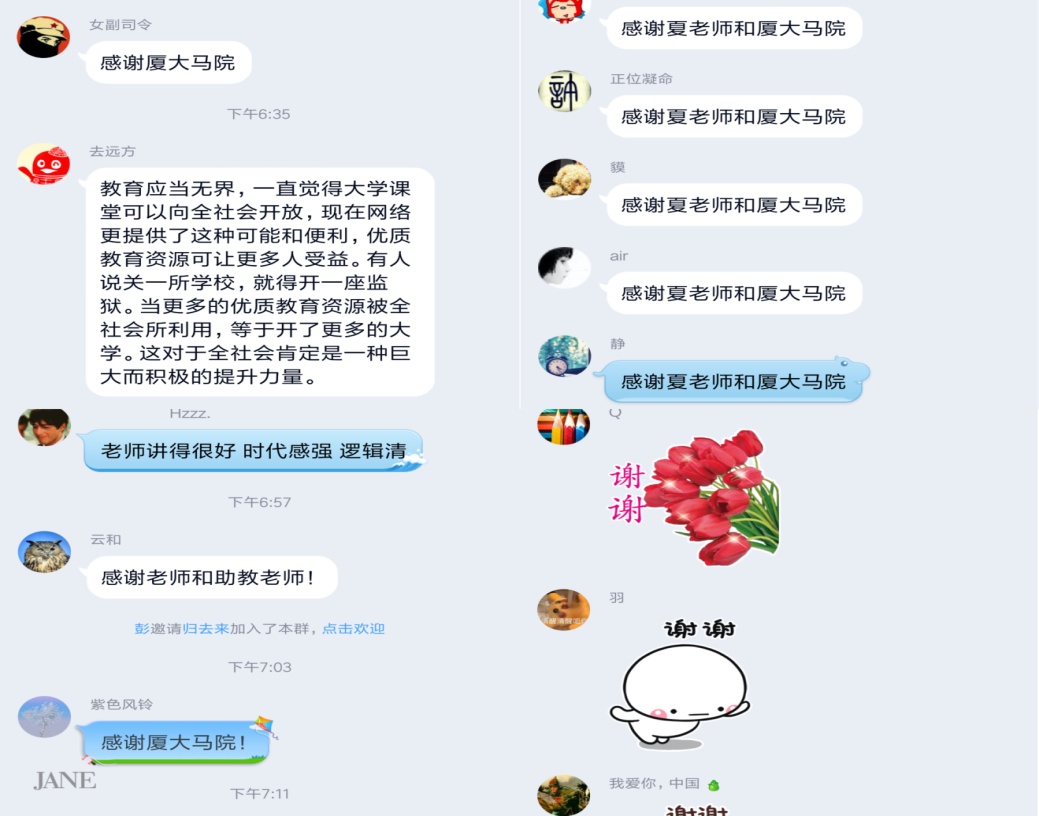 夏莹教授通过娓娓道来的讲授,将西方马克思主义的一些重要学者与核心思想进行了创新性解读,帮助我院师生更好地理解西方马克思主义。夏莹教授还利用每节课的后半段时间为同学们答疑解惑,与同学们进行交流互动。在课程结束后,同学们纷纷在网络平台留言,反响热烈。