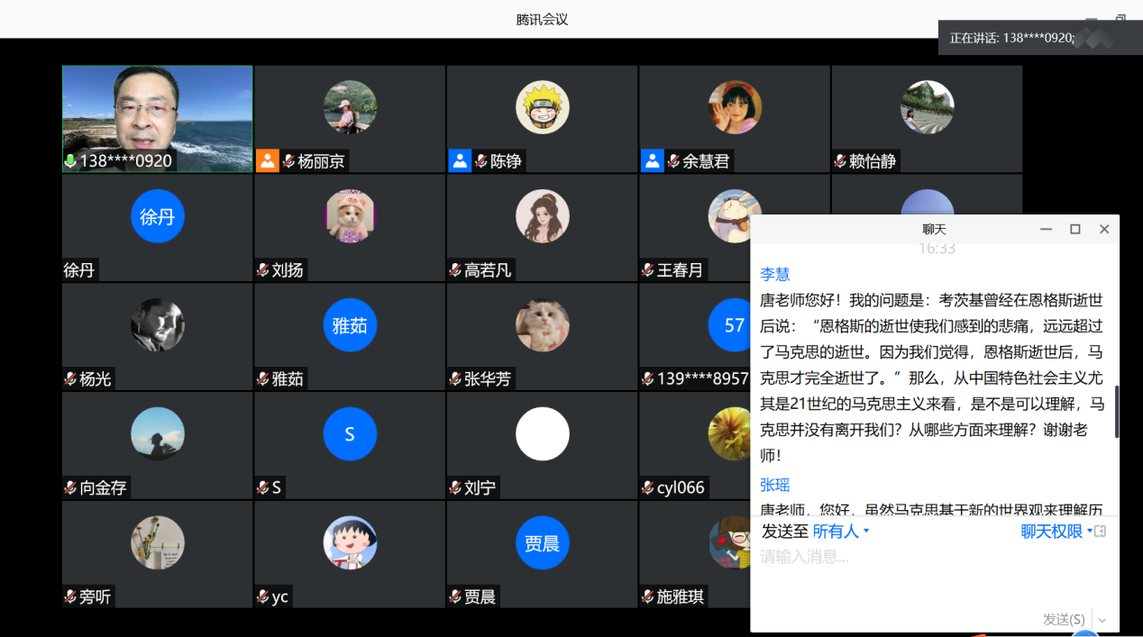 2020年7月10-17日,教育部“长江学者”特聘教授、南京大学哲学系博士生导师唐正东教授应邀在线上为我院硕博研究生开设了以“马克思主义经典著作选读”为主题的小学期课程。