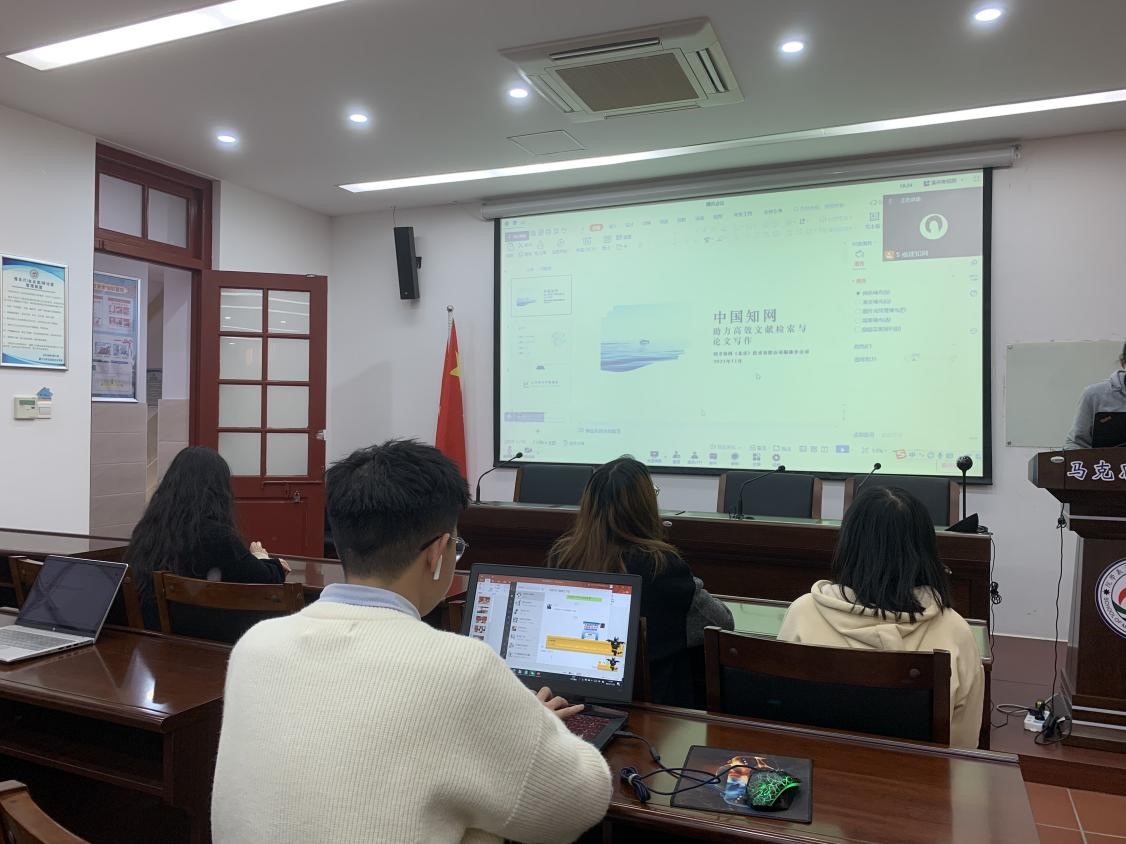 林秋君老师结合自己的文献搜索和写作经验,边实践边操作,从认识期刊数据库、选题和文献分析、论文写作、论文投稿四个方面生详尽介绍了论文写作所需的基本知识与必备技能,并鼓励同学们积极学习和利用中国知网,在实践中提高自己的文献搜集和论文写作的能力。同学们在此次培训中深受启发,受益颇多。
