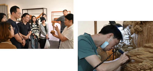 同日下午,实践队又前往春辉艺术馆和藏云堂探寻传统木雕产业的转型升级。作为一种传统技艺,木雕以精湛的雕刻技术展现中国山水画、古典文学及诗词等传统文化的魅力。实践队员在感叹巧夺天宫的雕刻技艺的同时,也为东方审美的艺术形式所震撼。近些年来,在科技的发展下,木雕产业抓住数字化时代所带来的巨大便利,利用互联网将木雕技艺发扬光大,也为木雕技艺的传承奠定基础。不仅如此,更精细化设备的引入,也让木雕产业的发展更进一步。通过科技的力量,木雕技艺的传承和创新得到推动,为莆田的文化产业注入新的活力。