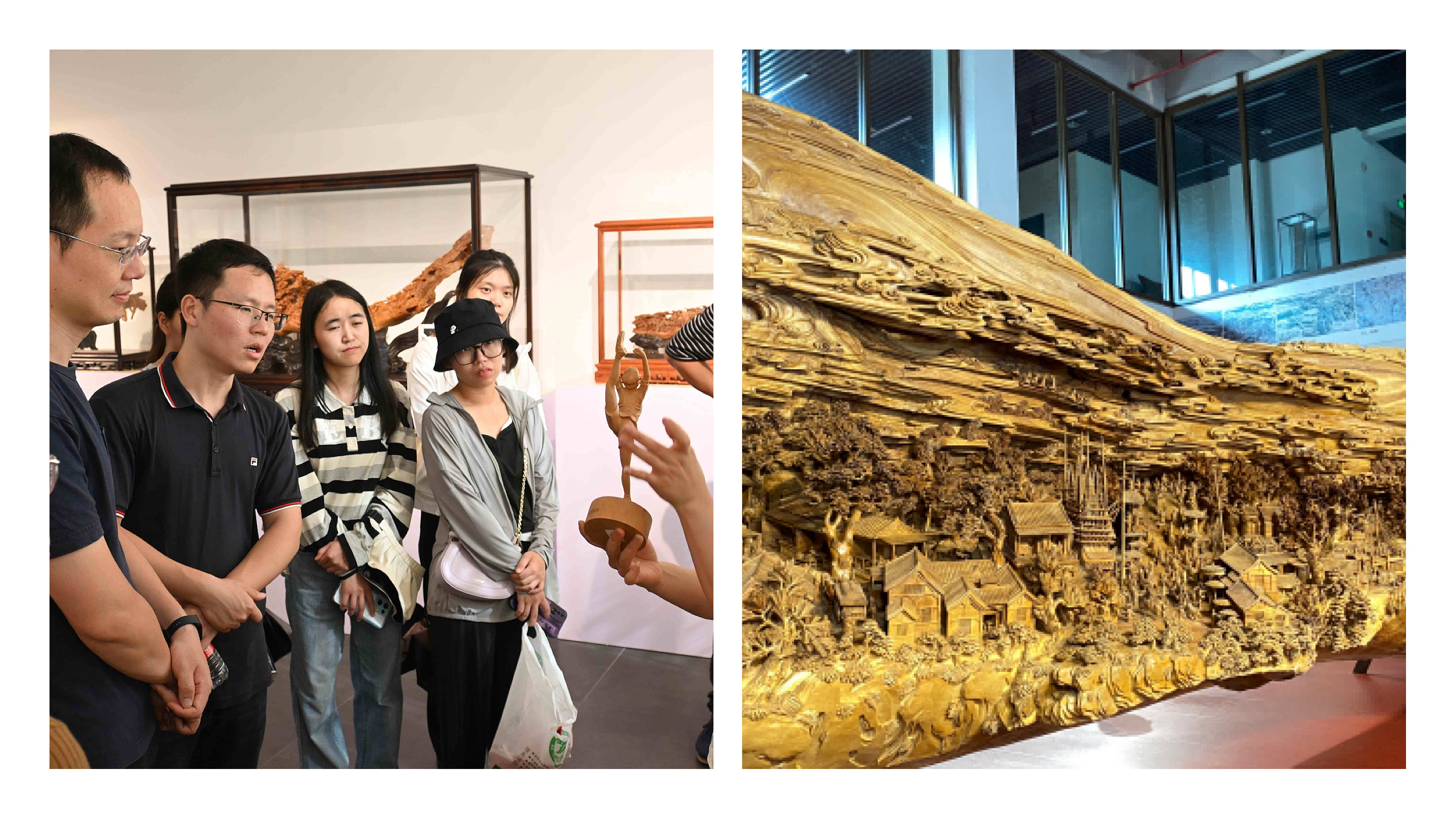 7月15日下午,实践团队前往参观春晖艺术馆和藏云堂。团队成员见证了创造了吉尼斯世界纪录的大型作品《清明上河图》--“世界上最长的木雕”。立体生动的仿古木雕,仿佛是古人伫立诉说着千百年来的华夏辉煌。千雕万刻的精湛手艺,领略了中国手艺人的高超技艺,赞叹于他们耐得住寂寞的心性品性,感受到了刻在骨子里的“匠人精神”。“美丽莆田,世界木雕”的这一世界名片,见证了各种精巧绝伦的木雕文物首饰,从一块朴拙木料到一件无价的艺术作品,雕刻的是岁月,是中华优秀传统文化的不断传承,更是期盼祖国早日统一,共享民族复兴伟大荣光的中国梦。