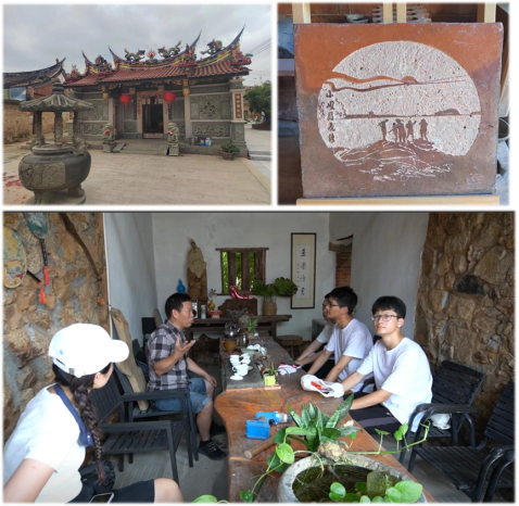 7月26日,实践队走访了黄厝村几处具有百年历史的古窑、古庙与古厝,并与当地驻村的艺术家进行了深入交流。实践队员们穿梭于黄厝的古屋古庙间,惊叹于摆放街头的精美雕塑,沉浸于村民屋舍墙外的壁画涂鸦。实践队员们深刻体悟了黄厝村将现代艺术与传统古厝有机融合的发展策略,感受到了古村落焕发的新生机,深刻体会到黄厝村如何践行“泥土精神”,让“古镇焕新生”。