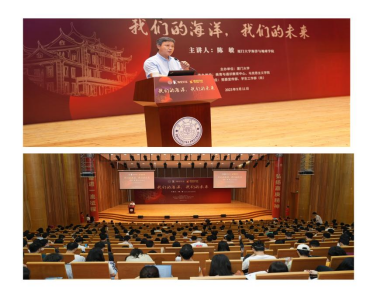 2023年9月11日下午,“博雅茶座”暨“思政对话”形势与政策大课堂在厦门大学科学艺术中心音乐厅举行。海洋与地球学院陈敏教授应邀作题为“我们的海洋,我们的未来”的报告,校党委常委、宣传部/教师工作部部长高和荣教授出席并向陈敏颁发“博雅茶座”纪念牌,思明校区、翔安校区、漳州校区线上线下约15000多名学生参加此次思政大课堂。