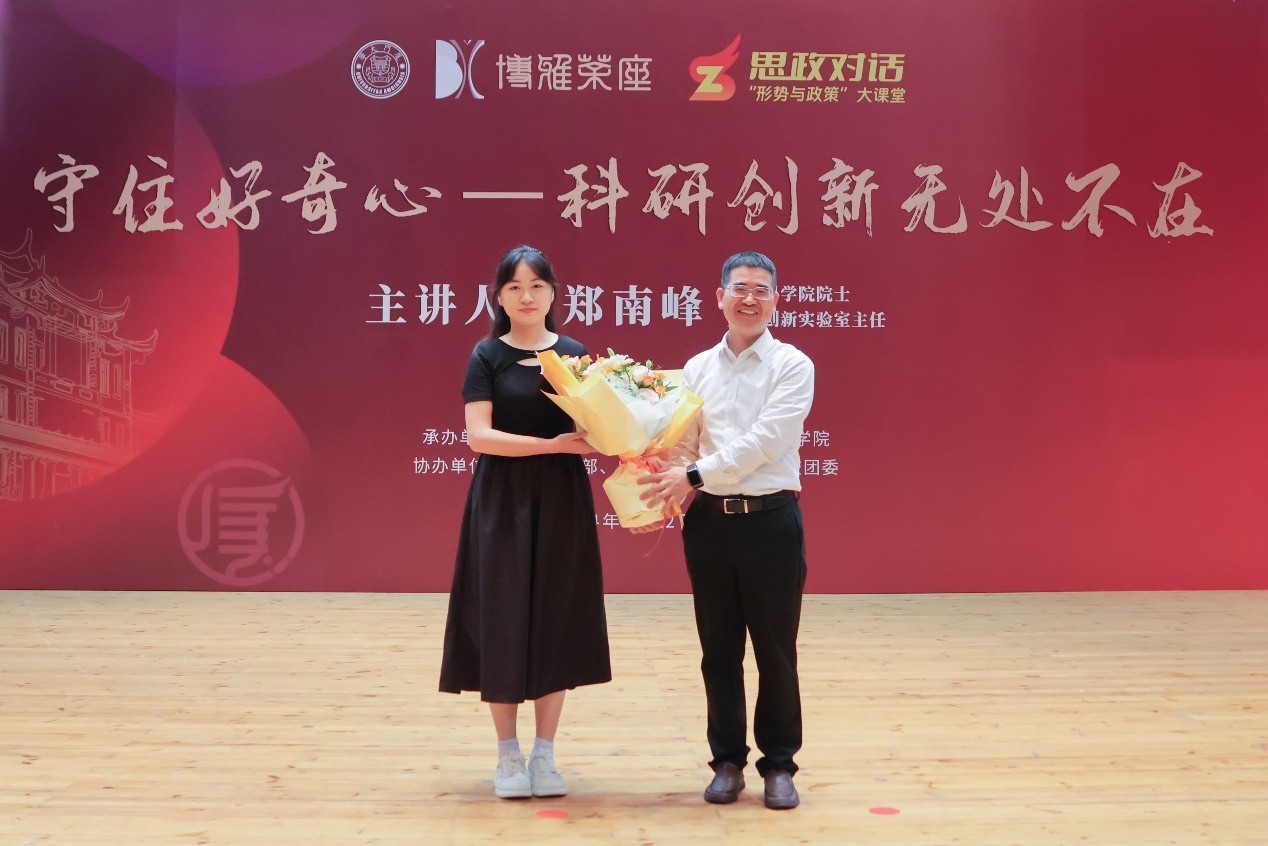 讲座结束后,学生代表为郑南峰院士献上鲜花。