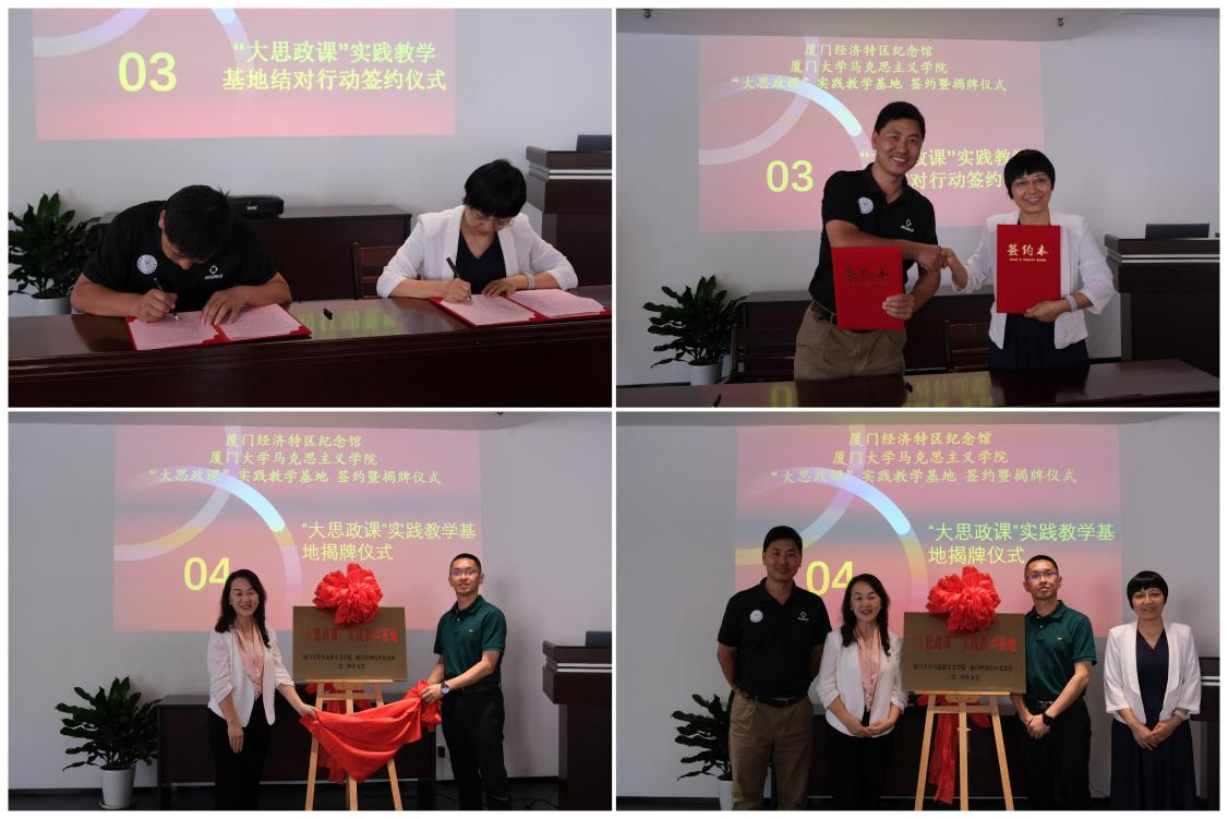 为深入贯彻习近平总书记对学校思政课建设作出的重要指示,不断开创新时代思政教育新局面,努力培养更多让党放心、爱国奉献、担当民族复兴重任的时代新人。5月17日下午,厦门大学马克思主义学院与厦门经济特区纪念馆在厦门经济特区纪念馆社教空间举行“大思政课”实践教学基地签约暨揭牌仪式。厦门大学马克思主义学院副院长原宗丽,厦门大学马克思主义学院副书记刘晓峰,厦门经济特区纪念馆副馆长徐翠红,厦门市博物馆馆务会成员、厦门市郑成功纪念馆馆长叶玮,厦门大学马克思主义学生代表等参加活动。