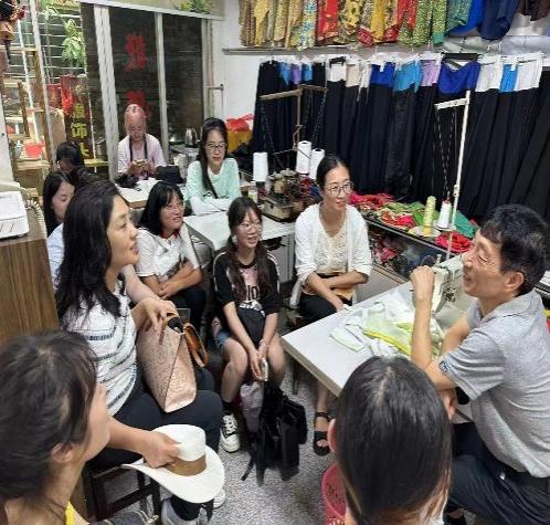 实践队与蟳埔女服饰非遗传承人黄晨进行了一场对话。黄晨介绍道,簪花的本意是“以花代礼”,花的数量代表着关系的亲疏。蟳埔村社区委员会黄荣辉会长则讲述了蟳埔另一重要的文化缩影——蚵壳厝。这些蚵壳是当年海上丝绸之路运载货物的商船返程时压舱所用,因此它们也是泉州成为海上丝绸之路的重要商贸港口的证明。两位访谈对象为实践队描绘了蟳埔的文化变迁和发展,让实践队对簪花热背后的文化有了更深刻的了解,也对传统文化该如何实现创造性转化与创新性发展有了更多的思考。
