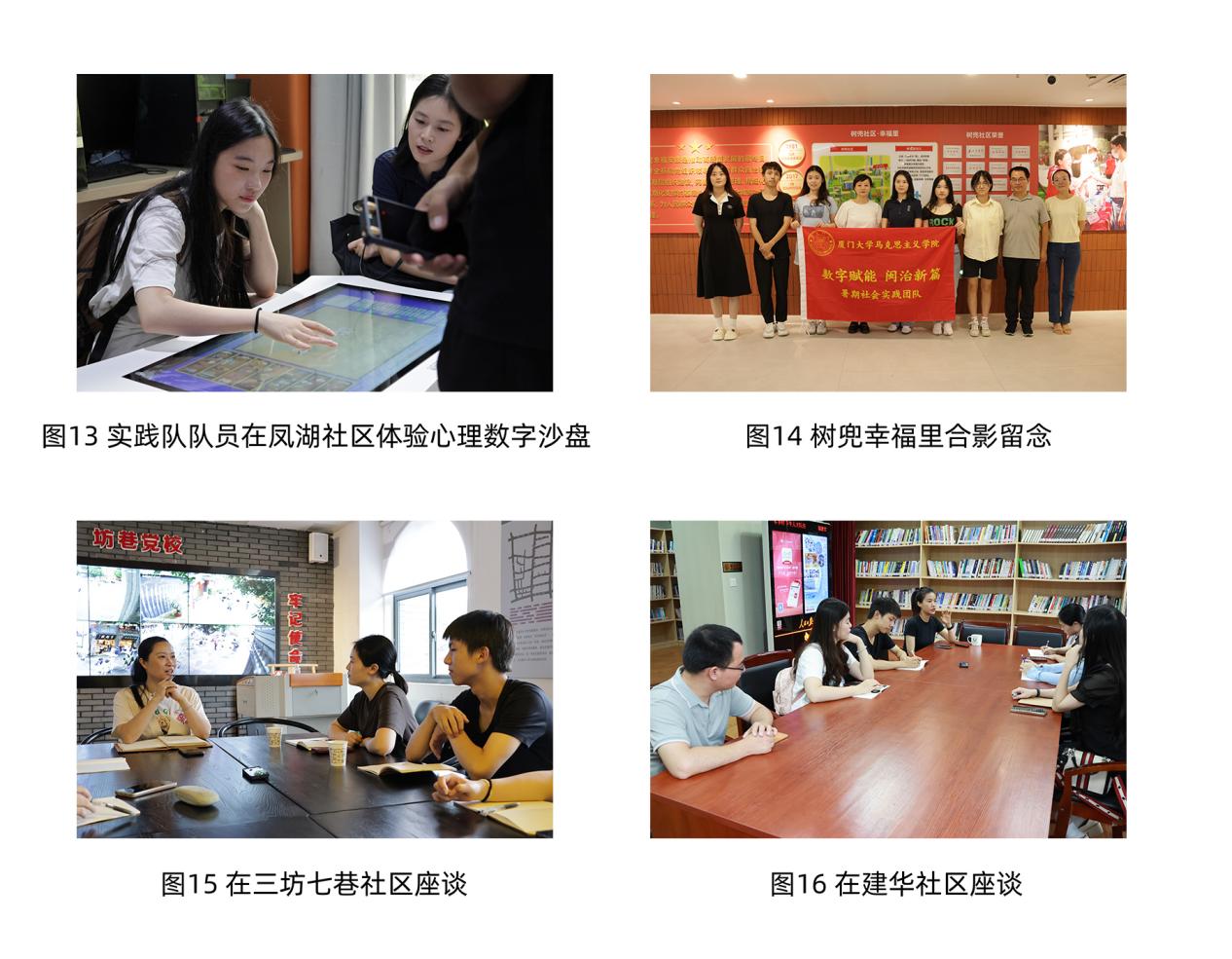随后,实践队前往凤湖社区、树兜幸福里、三坊七巷社区、建华社区等,调查数字技术在社区治理中的特色化应用,考察数字化社会治理在鼓楼社区的共性与个性。凤湖社区融合数字技术,关注居民身心健康与非遗传承,构建“完整社区”。在树兜幸福里,队员们悉心聆听了数字化技术如何赋能社区法治,重点询问了如何高效处理社区法律咨询、矛盾调解等相关问题。中国式现代化是物质文明和精神文明相协调的现代化,三坊七巷社区则利用数字技术激活社区,激活历史文化,推动文旅发展。为解答社区多以养老托育为重心、少有活跃青年力量的问题,建华社区探索性尝试青年夜校等活动,尝试增强对青年的吸引力,为社区治理注入新活力。