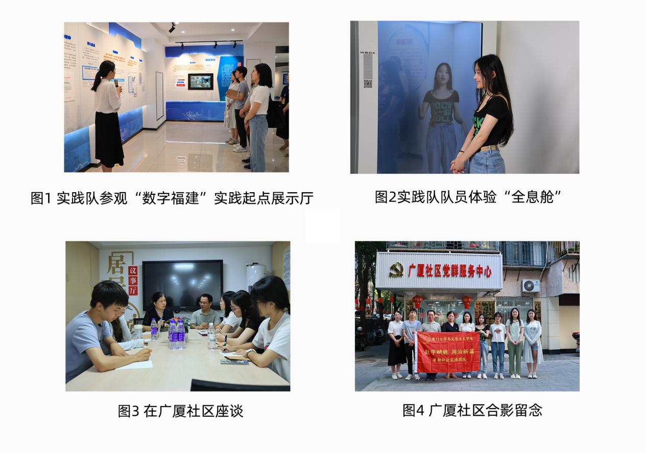 鼓楼区是“数字福建”的重要实践起点。实践队首访广厦社区,在“数字福建”实践起点展示厅,实践队师生追溯福建数字化社会治理的起源与演变,感悟“四个贴近”理念转化为社会治理现实的数字化征程,体验“全息舱”数字文旅背后的技术飞跃。