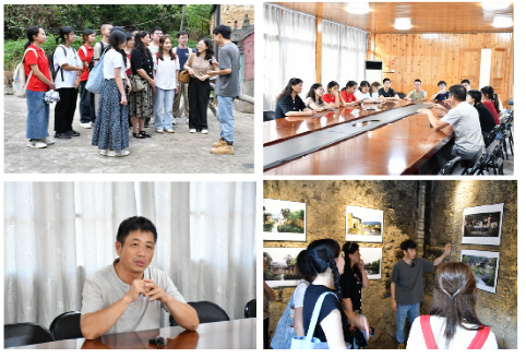 龙潭村是屏南县“文创+振兴乡村”的经典案例。在村委会委员、回乡村民陈忠业引导下,队员们参观共创空间、四平戏团、红曲黄酒酿造工艺基地、油画教学基地、电影制作基地等地。陈忠业分享了自己从外出打工到返乡创业的故事。随后,实践队与村支部书记陈孝镇进行座谈,就乡村文化保护、产业发展规划等话题进行深入交流。