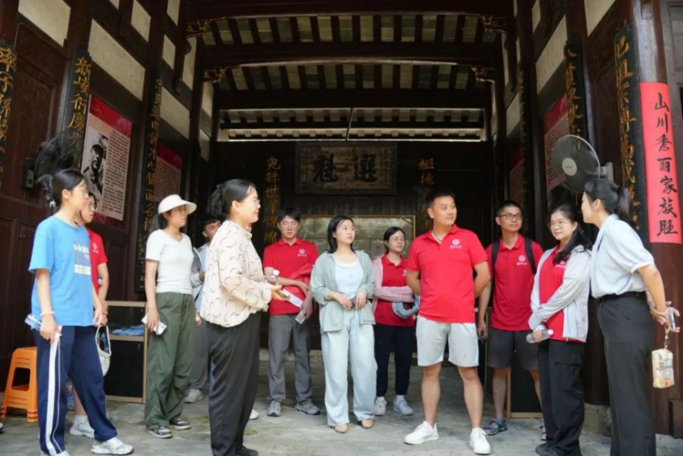 8月1日上午,实践队在光明镇党政办干事蒋晓媛和宣传干事白丽君的带领下,来到光明苏区纪念馆。这里不仅记录了苏区的革命历程,更是青年一代学习革命精神、传承红色基因的重要场所。在参观中,队员们深刻体会到伟大革命先辈不屈不挠的革命精神和矢志不渝的理想信念。队伍还前往余氏宗祠,即承载着丰富的历史信息和革命记忆的光明区苏维埃政府旧址。队员们一边聆听宣传员讲述革命先辈的英雄事迹,一边观摩余氏宗祠中记录着革命历程的牌匾,深刻感受光明镇深厚的红色文化底蕴。