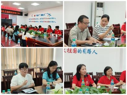 为深入学习贯彻习近平总书记关于教育的重要论述,推进高校与地方中学在教育改革、教育衔接和人才培养等方面的协同合作,2024年8月26日下午,厦门大学“绿影映丹心”社会实践队在刘也老师和黄美笛老师的带领下,探访办学历史悠久的瑞金第一中学,同校党委书记黄志华、党委委员李桂海、德育处主任莫燕玲、教研组长胡细姣及片区兼职政治教研员钟艳兰围绕“新时代大中小学思政课一体化建设”开展研讨交流。