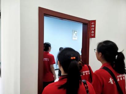 以心育心,护航成长。在图书信息中心,实践队参观配备多名专业心理老师以及音乐放松室、心理沙盘室、心理宣泄室等多个功能室的学生发展指导中心。莫燕玲老师介绍道:“每天下午放学到晚上十点晚自习结束之前的这段时间,是心理健康中心最热闹的时候。”实践队师生深刻体会到,大中小学心理健康教育一体化是德育一体化的产物,是思政一体化的基础。对莘莘学子心理健康的深切关怀与细致呵护,是教育教学的重要方面,也为校园增添了一道亮丽的风景线。有志成为思政课教师的王心睿同学认为,今后走上工作岗位,不仅要努力把思政课讲深讲透讲活,也要时刻关注学生的心理健康,为他们的成长之路保驾护航。