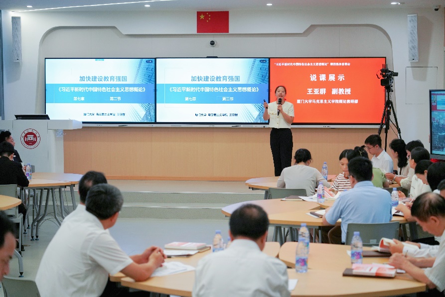 2024年9月2日上午,“读懂中国式现代化 讲好身边的改革故事”——党的二十届三中全会精神融入“习近平新时代中国特色社会主义思想概论”课程集体备课会在福建师范大学举办,省委常委、宣传部部长张彦现场观摩并讲话。我院组织统一线上收看备课会,徐进功院长、党委书记石红梅及习近平新时代中国特色社会主义思想概论教研部全体老师参加,王亚群副教授代表厦门大学作说课展示,得到与会专家高度好评。