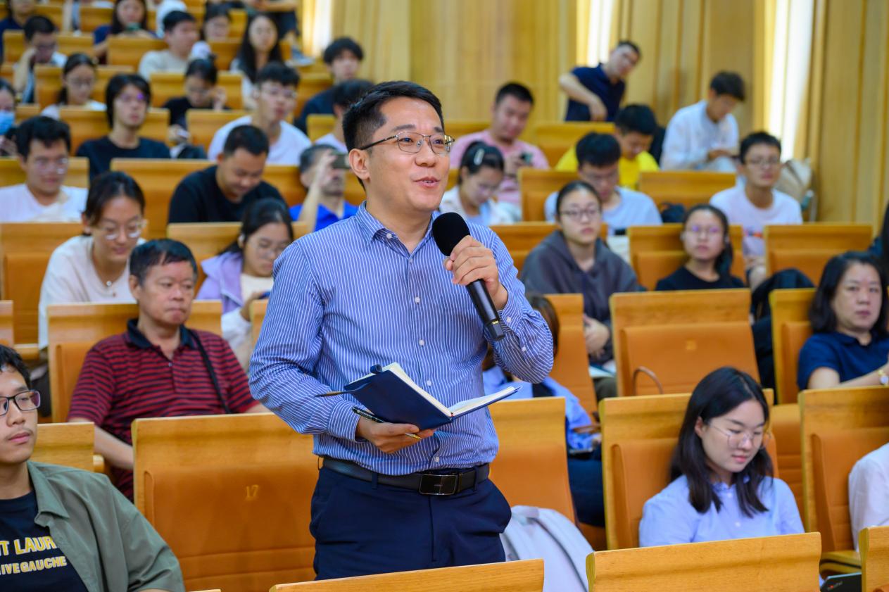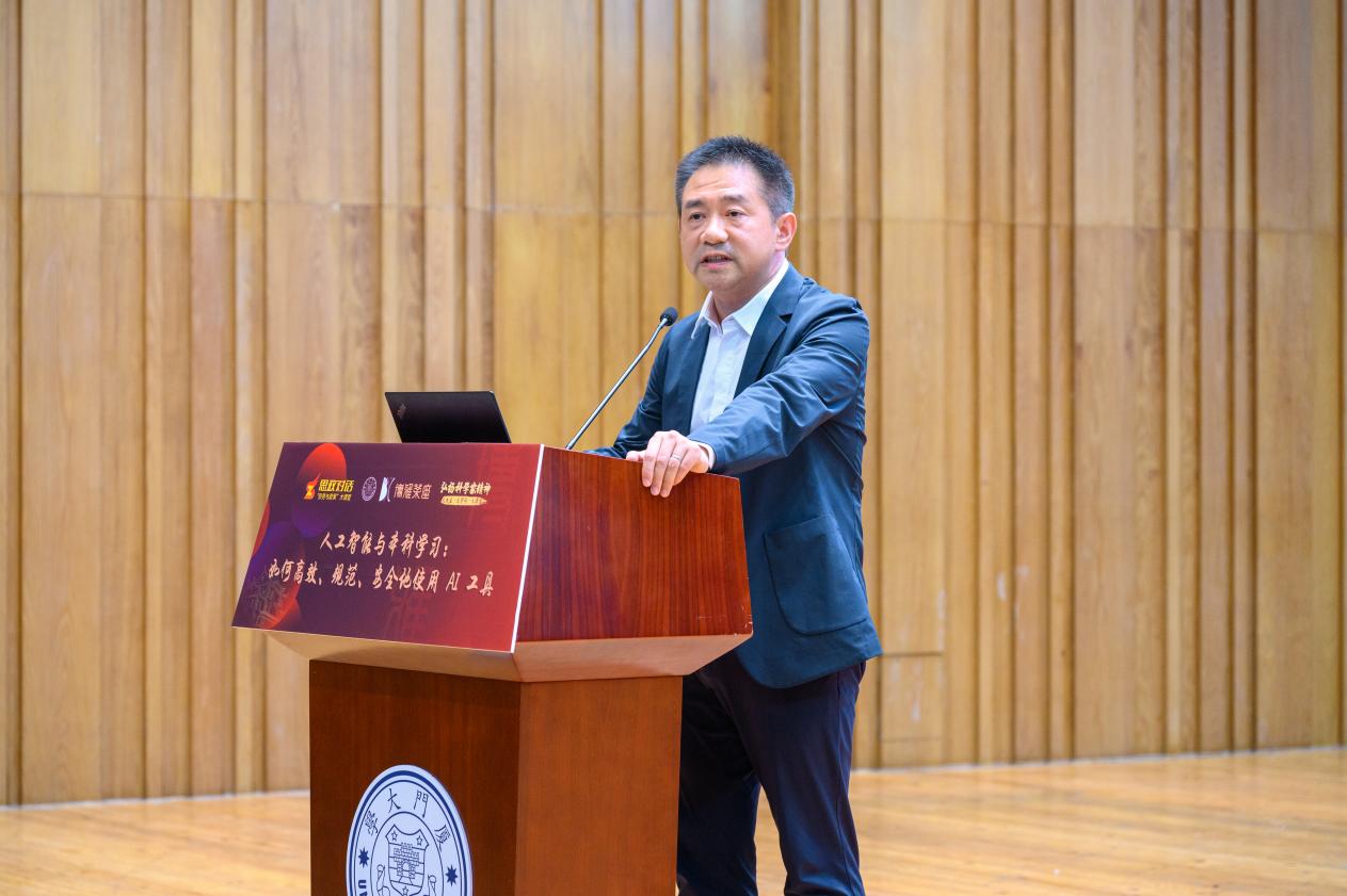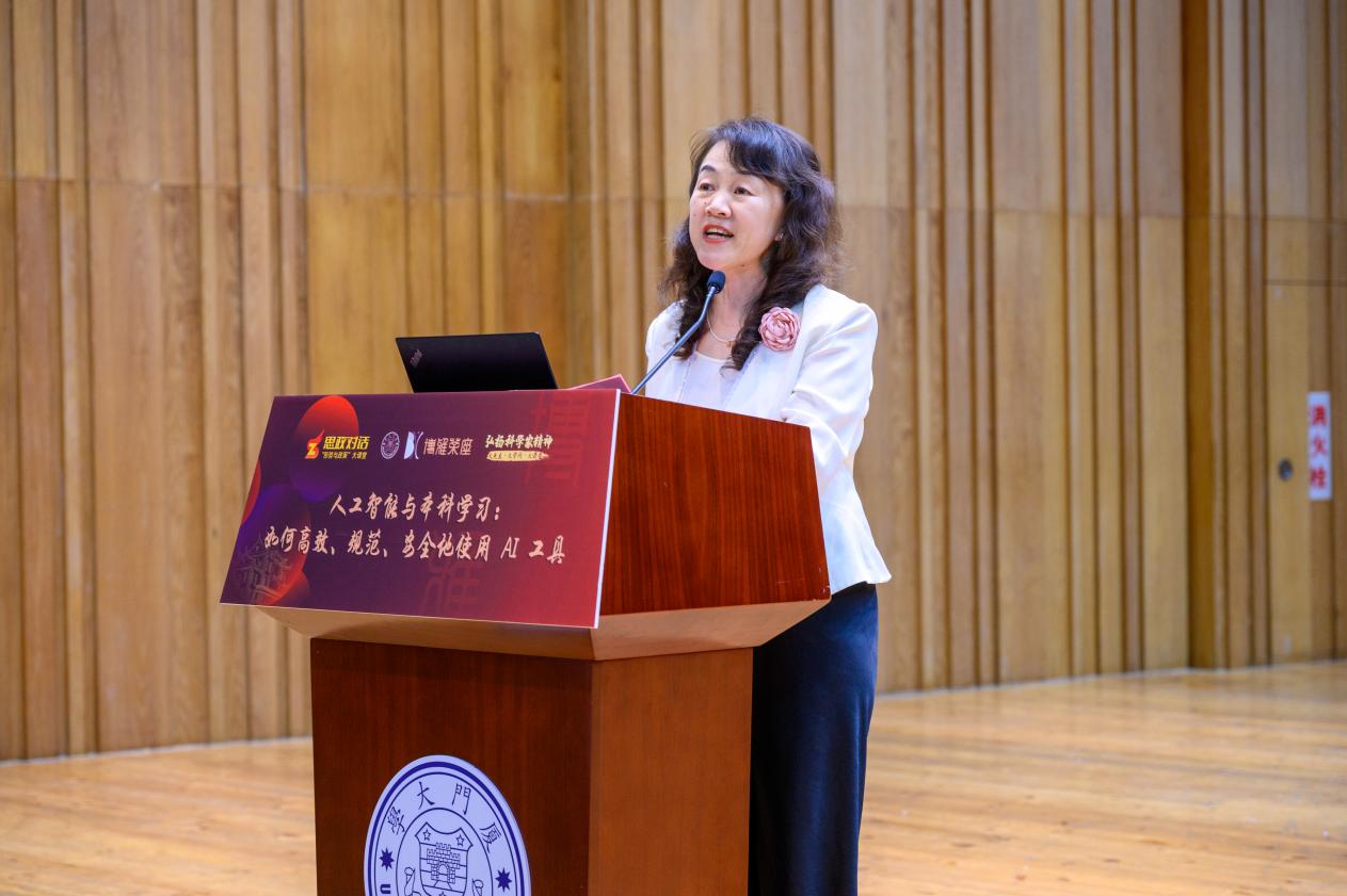 2024年10月28日,“博雅茶座”暨“思政对话”形势与政策大课堂、弘扬科学家精神大思政课活动在厦门大学思明校区科艺中心音乐厅举行。厦门大学教务处处长、现代教育技术与实践训练中心主任王程教授应邀作“人工智能与本科学习:如何高效、规范、安全地使用AI工具”的主题讲座,马克思主义学院副院长原宗丽教授主持。厦门大学美育与通识教育中心、学生工作部(处)、马克思主义学院的领导和老师及线上线下一万余名学生共同参与交流。