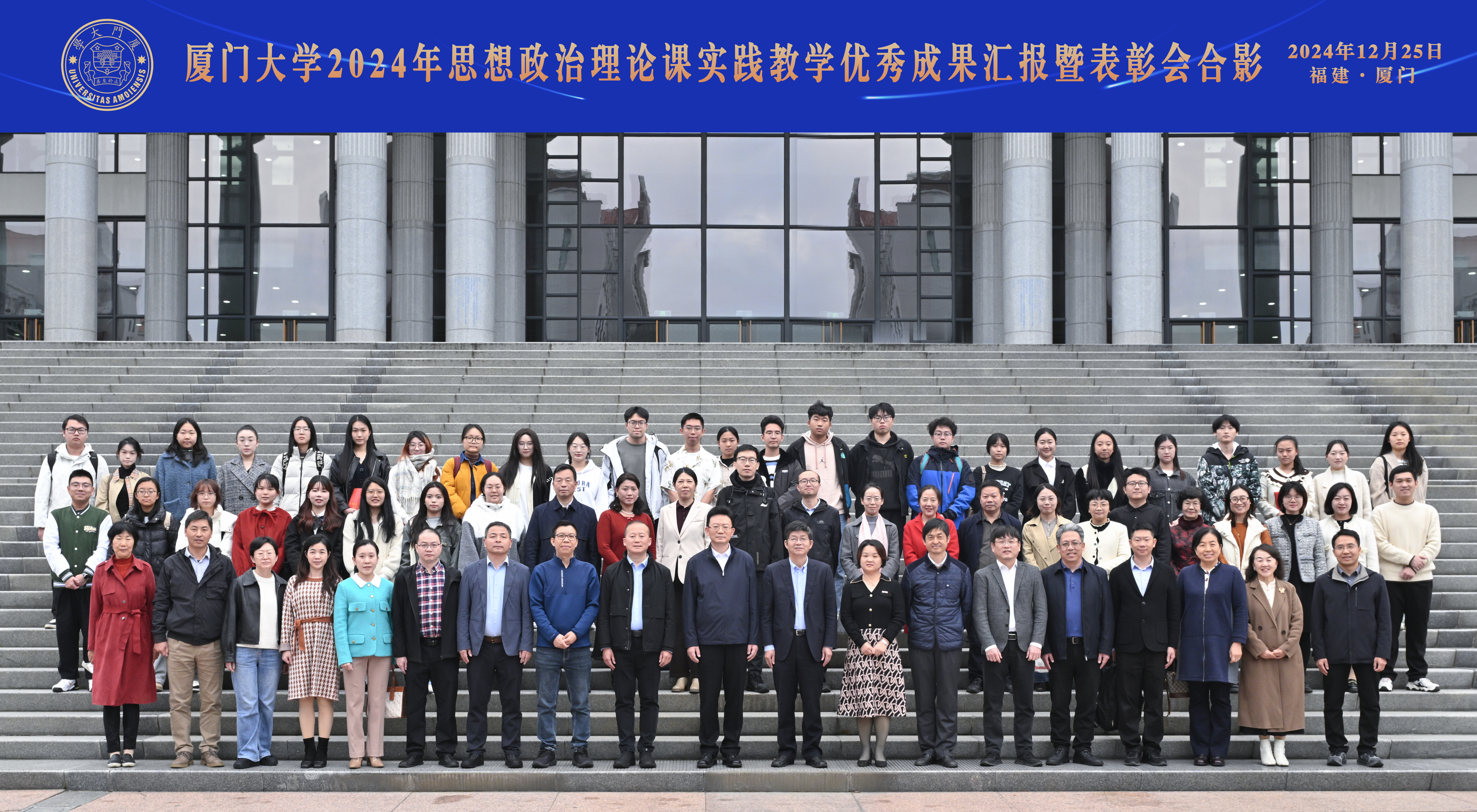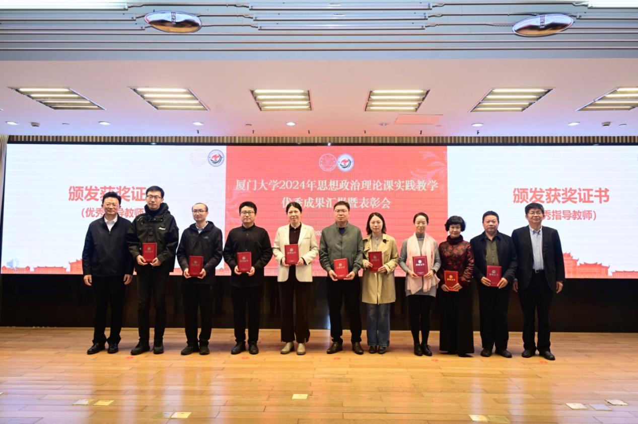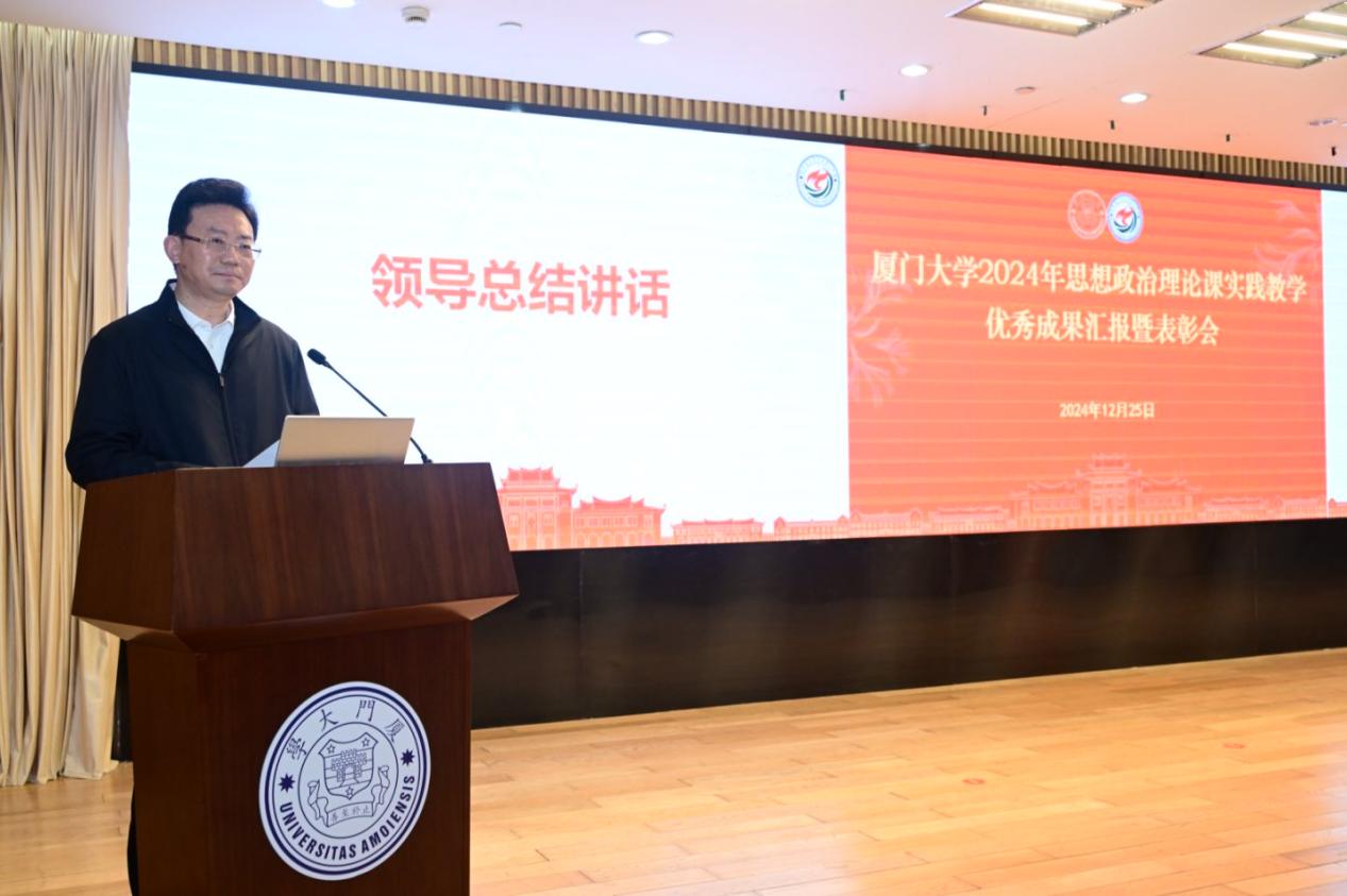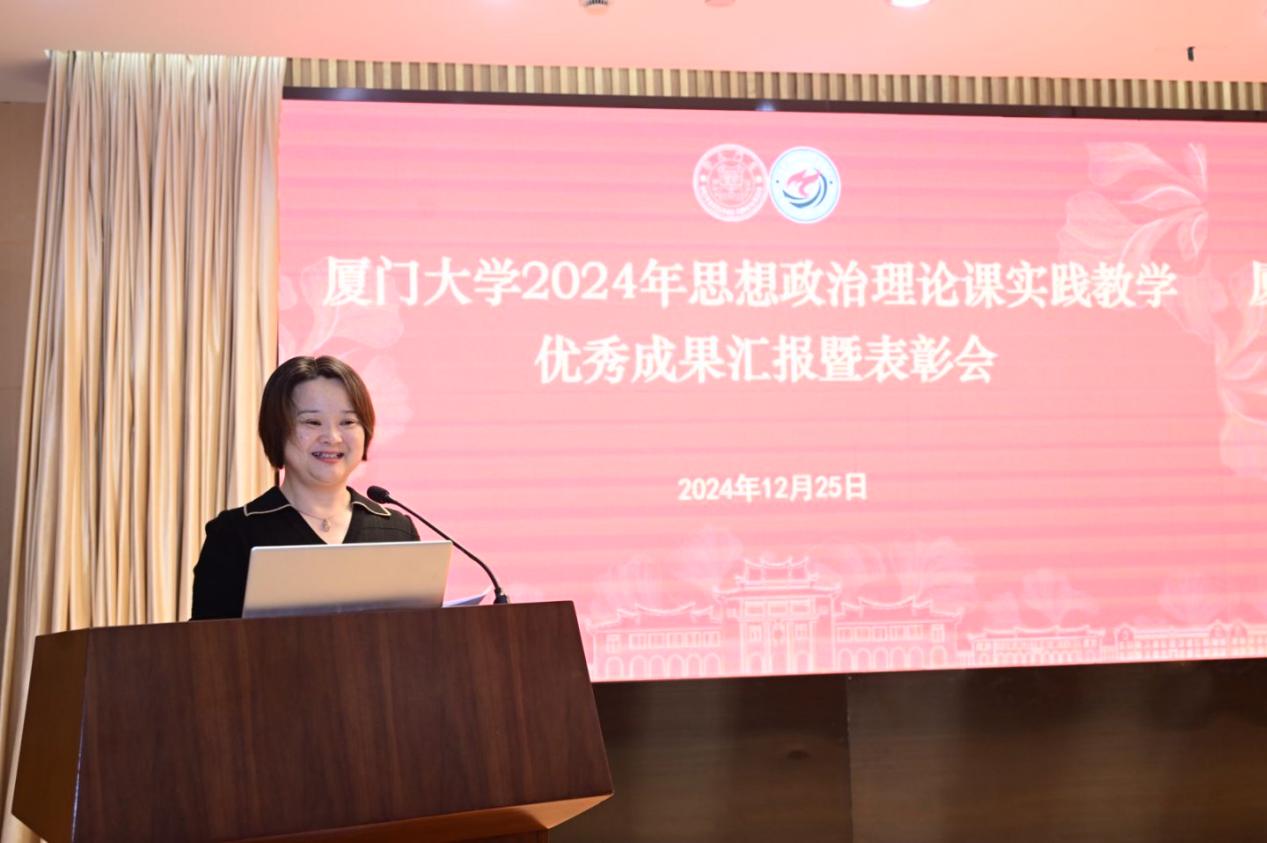 为进一步推进思想政治理论课实践教学育人工作,全面贯彻落实党的教育方针,落实立德树人根本任务,培养中国特色社会主义事业合格建设者和可靠接班人,2024年12月25日下午,厦门大学2024年度思想政治理论课实践教学优秀成果汇报暨表彰会在科学艺术中心一楼多功能厅召开。厦门大学党委副书记、组织部部长、统战部部长孙理,厦门大学原党委副书记、马克思主义学院院长徐进功,学校各部门负责人、各学院分管学生工作的院党委副书记、学校思政课实践教学中心负责人、思想政治理论课教师、辅导员及学生代表等出席本次会议。会议由厦门大学马克思主义学院党委书记石红梅老师主持。