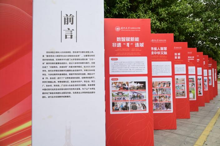 习近平总书记强调,“马克思主义是在实践中形成并不断发展的,要高度重视思政课的实践性,把思政小课堂同社会大课堂结合起来。”厦门大学持续开展思想政治理论课实践教学工作,创新实践教学形式,不断做实做深,提升我校思政课实践教学品牌的影响力,取得显著育人效果,在实践中让广大师生正确认识时代责任和历史使命,在新时代新征程上展现新气象新作为,为全面建设社会主义现代化国家、全面推进中华民族伟大复兴贡献青春力量。