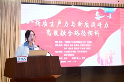 为进一步提升实践教学成效,本次表彰大会新增实践教学优秀成果特等奖答辩环节。经前期评选,共有三支优秀队伍围绕“新质生产力”主线,从农业、制造业和现代服务业三个角度,分别就《培育乡村振兴新动力—以寿宁县“新农人”撬动乡村振兴为例》《新质生产力与新质战斗力高效融合路径探析》《数字时代的劳动与劳动者调研》等实践成果开展专题答辩汇报,答辩专家刘子曦、洪海松、张有奎老师针对汇报内容进行了点评提问,参会老师和同学现场投票,最终选出了特等奖、最佳人气奖和最佳展示奖小组。