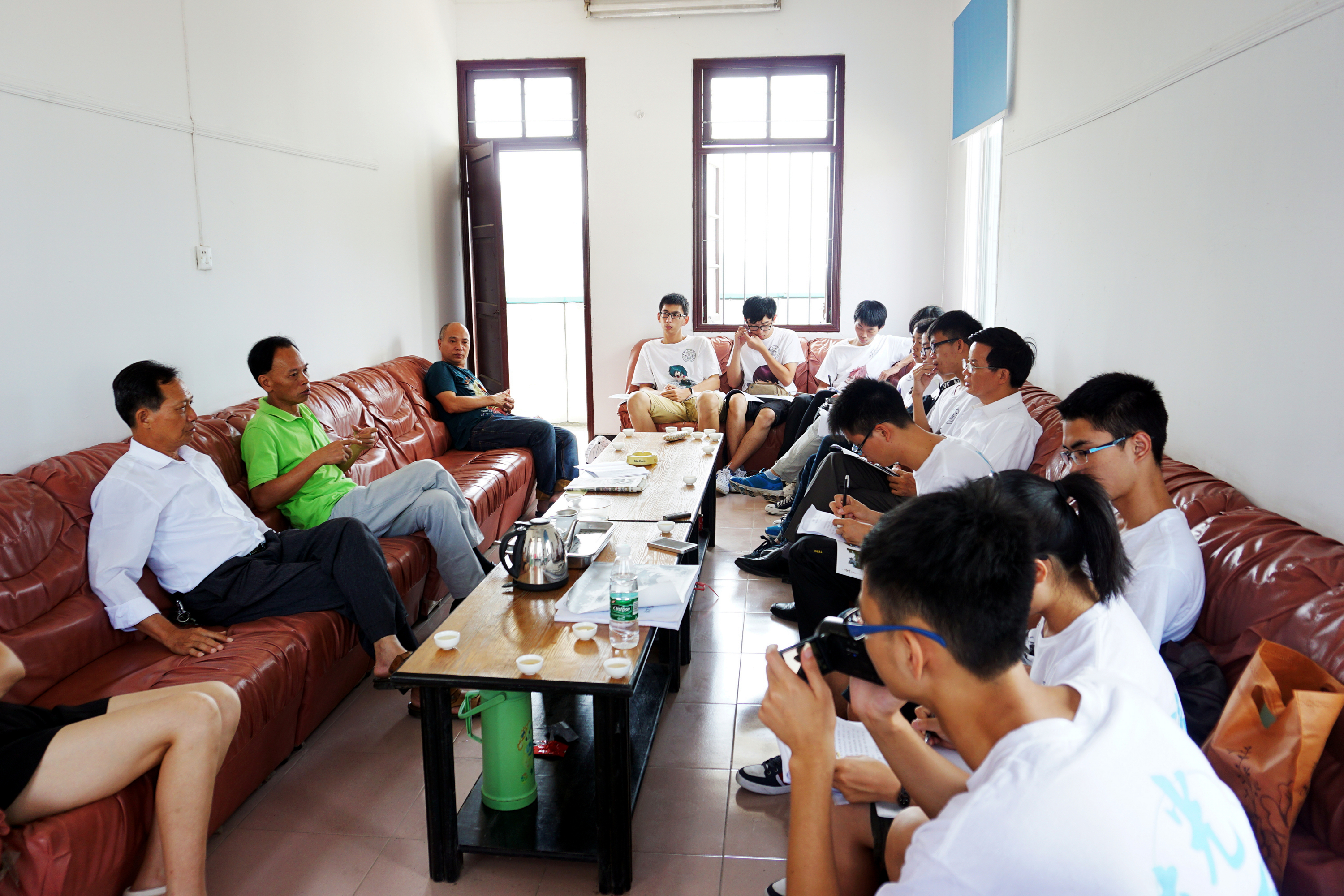 抵达彭格村后,流光一夏实践队与接待的村干部一同品尝了安溪当地出产的铁观音茶,在四溢的茶香之间展开了关于“美丽乡村建设”的座谈会。会上,村书记陈维明先生和村副书记、村民委员会主任讲述了彭格村在申请及建设“美丽乡村”上做出的努力与艰辛,村干部领导班子为了实现“村庄秀美”、“环境优美”、“生活甜美”、“社会和美”四个目标,依托安溪本地茶文化与临近清水岩景区之便,立于彭格特色扎实推进美丽乡村建设,取得了显著成效。彭格村与2012年与2013年分别入选“安溪县美丽乡村示范村”与“泉州市美丽乡村入围村”。陈书记无不自豪地提到,自己村已经连续三年拿到县里美丽乡村评选的第一名。“村委要努力争取,把握机会,条件是有的,机会是有的。”谈及发展经验时,陈书记这样说道。随后,实践队成员分别对村子内卫生整治、文化建设、资金来源和村庄规划等问题与彭格村村干部进行了交流,村干部们对实践队的问题做了详细回答。