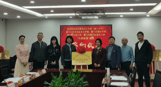 随后,来自四所院校的代表共同签订了“大思政课”建设协议书,并为“厦门大学马克思主义学院‘大思政课’建设实训基地”揭牌。
