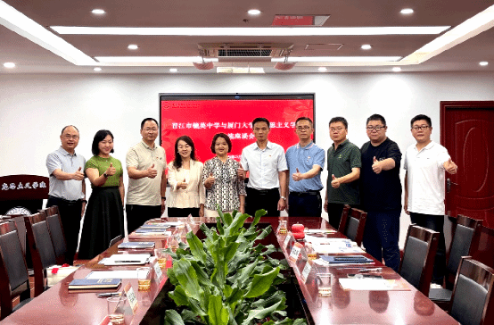 座谈会上,双方围绕大中小学思政课衔接的难点与路径展开深入交流。毓英中学代表提出,当前学校思政活动虽然形式多样,但是在特色活动凝练、教师专业发展、德育创新等方面亟需高校的专业指导。厦门大学马克思主义学院教师代表提出,应结合中学实际需求,通过提炼校本特色精神内核,构建“点-线-面”立体化育人框架;同时充分发挥晋江地域的“海文化” “红色文化” “侨文化”等资源优势,开发具有显示度的特色实践项目。此外,还可通过“朋辈支持”模式,在大中学生实践实习、生涯规划等方面形成良性互动机制。双方就课程资源开发、实践基地建设、师资培训交流等具体合作方向达成重要共识。