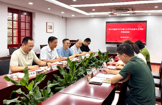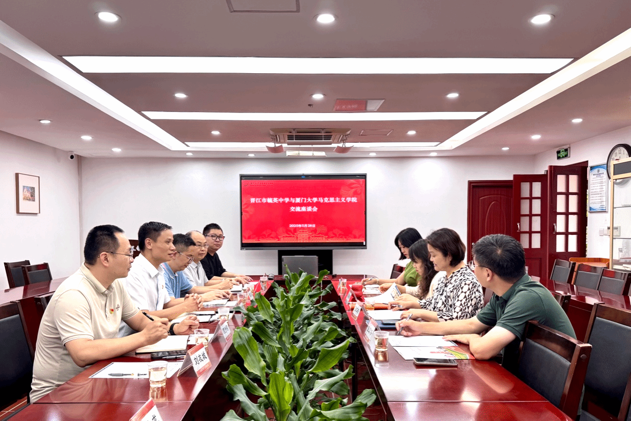 2025年5月28日下午,晋江市毓英中学党总支书记、校长曾清源率队到访厦门大学马克思主义学院,双方在囊萤楼302会议室举行交流座谈会,围绕大中小学思政课一体化建设展开深入研讨。厦门大学马克思主义学院党委书记石红梅、副院长原宗丽、党委委员佳宏伟、团委书记侯佳君等出席会议。