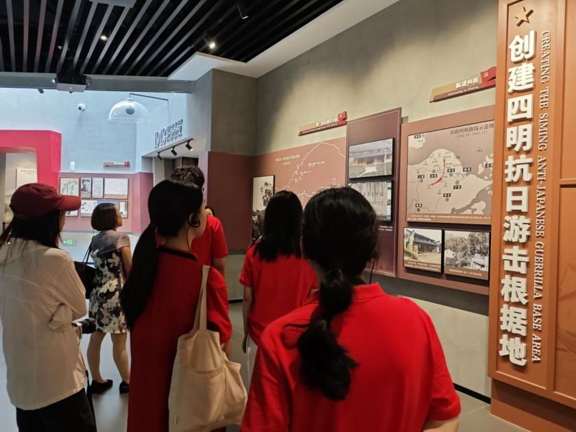 7月16日,实践队聚焦浙东(四明山)抗日根据地旧址群开展实践研学。队员们按历史脉络调研中共浙东区委旧址、浙东行政公署旧址等,系统了解根据地建立抗日民主政权、推行施政纲领的实践;也在浙东银行和新华社浙东分社旧址,观察抗币、印刷设备等文物,梳理出根据地在经济自主、舆论宣传方面的抗战举措。此外,实践队同时瞻仰了浙东革命烈士纪念碑,深入学习了艰苦奋斗、前赴后继的四明山革命精神。