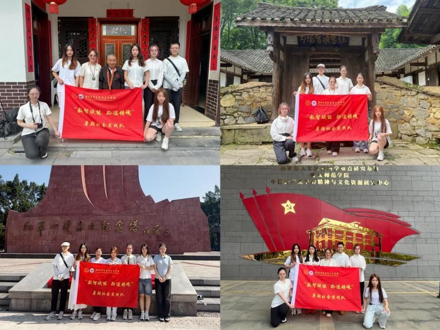 7月11日至7月14日,实践队先后来到遵义会议旧址、红军山烈士陵园、娄山关红军战斗遗址、苟坝会议旧址群、茅台渡口等革命老区与红色教育基地,深刻感受中国共产党人崇高的政治品格与革命精神。在遵义会议陈列馆中,讲解员通过展板图文、动态沙盘与讲解词的巧妙串联,为队员们生动还原中国共产党人机动灵活的军事指挥艺术;在红军山烈士陵园,实践队员以“红军遵义行,军民鱼水情”为主题开展了一次生动鲜活的现场教学;登上西风台、徒步百丈梯,让队员们对红军长征的艰险有了直观感受与深刻体会;步行于马灯小道,队员们思考如何将苟坝会议所蕴含的中国共产党人坚持真理、敢于担当的宝贵品质融入到高校思政课教学之中;在赤水河边驻足而立,队员们更深刻认识到:将红色文化融入日常教育,能够让遵义的红色地标在新时代焕发生机,成为激励我们奋勇前进的精神灯塔。