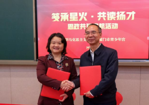 为进一步推动大中小学思政课一体化建设改革创新,纪念福建省第一个党组织——中共厦门大学支部成立100周年,3月7日上午,学院与厦门市青少年宫开展“笺承星火・共读扬才”思政共建启航活动。市青少年宫主任柯瑞宁、副主任吴月梅,少年事务部部长钱岩淼,学院党委书记石红梅、党委副书记张随刚,教学秘书庄键安以及学院“囊萤之光”研习社社员、厦门市青少年宫特色中队少先队员共同参与活动。