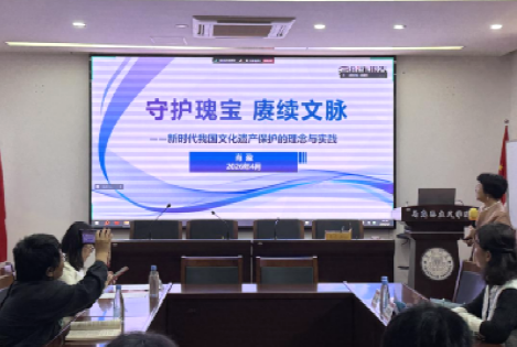 4月1日下午,肖盈老师围绕“守护瑰宝 赓续文脉——新时代我国文化遗产保护的理念与实践”专题,深入解读了文化遗产保护与民族复兴的深层关系。她表示,要想讲好文化遗产保护的课程内容,就要讲清楚文化遗产保护的重要意义与理论根基,讲清楚中华文明的突出特性与历史依据,讲清楚文化遗产承载的中国精神内核,讲清楚新时代文化遗产“创造性转化、创新性发展”的实践路径,讲清楚文化遗产保护的当代价值与现实需求,从而引导学生坚定文化自信,自觉做中华文明的传承者与弘扬者。