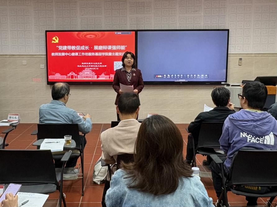 为深入贯彻立德树人的根本任务,推动党建工作与教育教学深度融合,以正确政绩观促进青年教师能力提升。4月3日下午,由教师发展中心主办,我院承办的“党建带教促成长・展磨辩课强师能”磨课工作坊服务基层学院暨主题党日活动,于囊萤楼112教室顺利举行。教学指导专家中国语言文学系朱水涌教授、外文学院傅似逸教授、中国语言文学系郑尚宪教授、医学院钱洪流教授,省青教赛参赛选手哲学系助理教授王凯立、马克思主义学院助理教授刘玲、医学院副教授梁青参加此次活动。同时,此次活动也是教师发展中心党支部、马克思主义学院马克思主义中国化教工党支部联合开展的主题党日活动。活动由马克思主义学院党委书记石红梅教授主持。