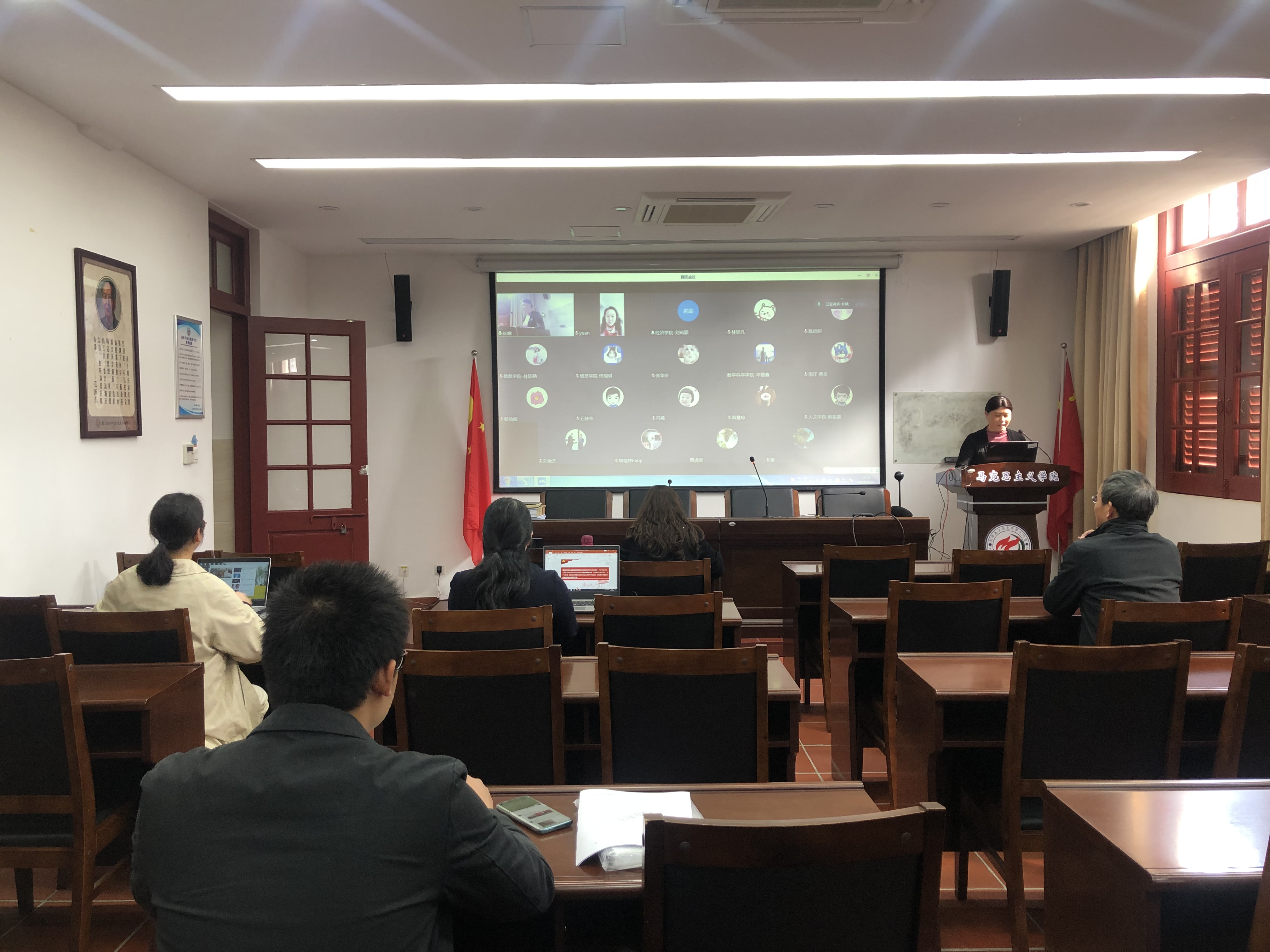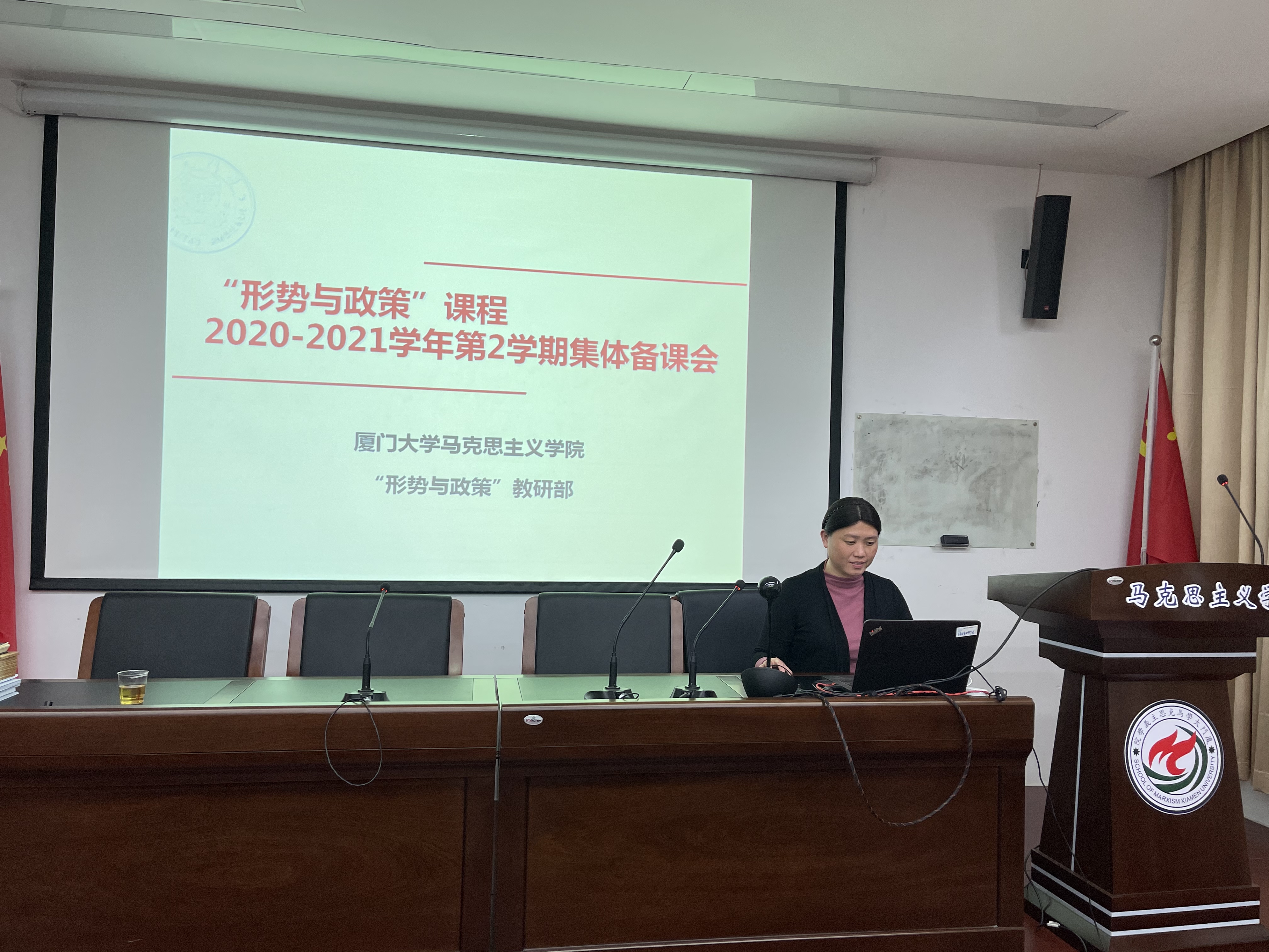 2021年2月26日下午,2020-2021学年春季学期“形势与政策”课程集体备课会在囊萤楼216会议室举行。本次会议采取线上与线下相结合的方式。形势与政策教研部主任吴文琦主持本次会议,学院党委书记侯利标、副院长原宗丽、课程负责人和课程任课教师以及学生处易班负责人参加会议。