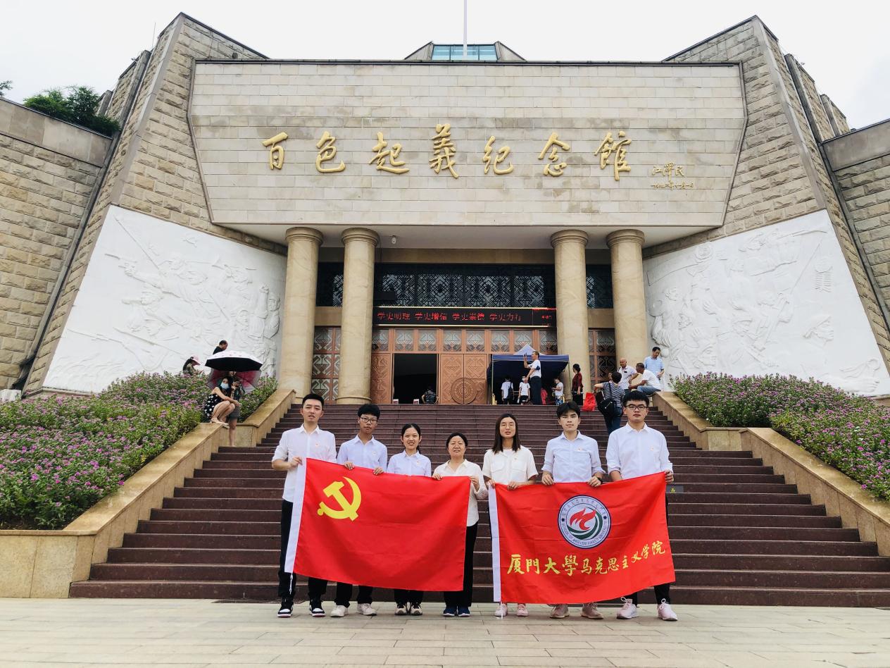 为了深入学习贯彻习近平总书记在全国党史学习教育动员大会上的重要讲话精神和习近平总书记在庆祝中国共产党成立100周年大会上的重要讲话精神,铭记光辉历史,传承红色基因,增强历史自觉,做到学史明理、学史增信、学史崇德、学史力行,7月3日至7月9日,马克思主义学院杨玲副教授带领3名研究生和4名本科生前往广西南宁、百色、福建厦门开展了为期7天的社会实践。从粤东会馆到百色起义纪念碑、纪念馆;从红七军战斗遗址到韦拔群纪念馆;从百谷红军村到经正书院、那恒村、红军码头……实践队一行追寻先辈足迹,重温革命历程,感悟红色精神。