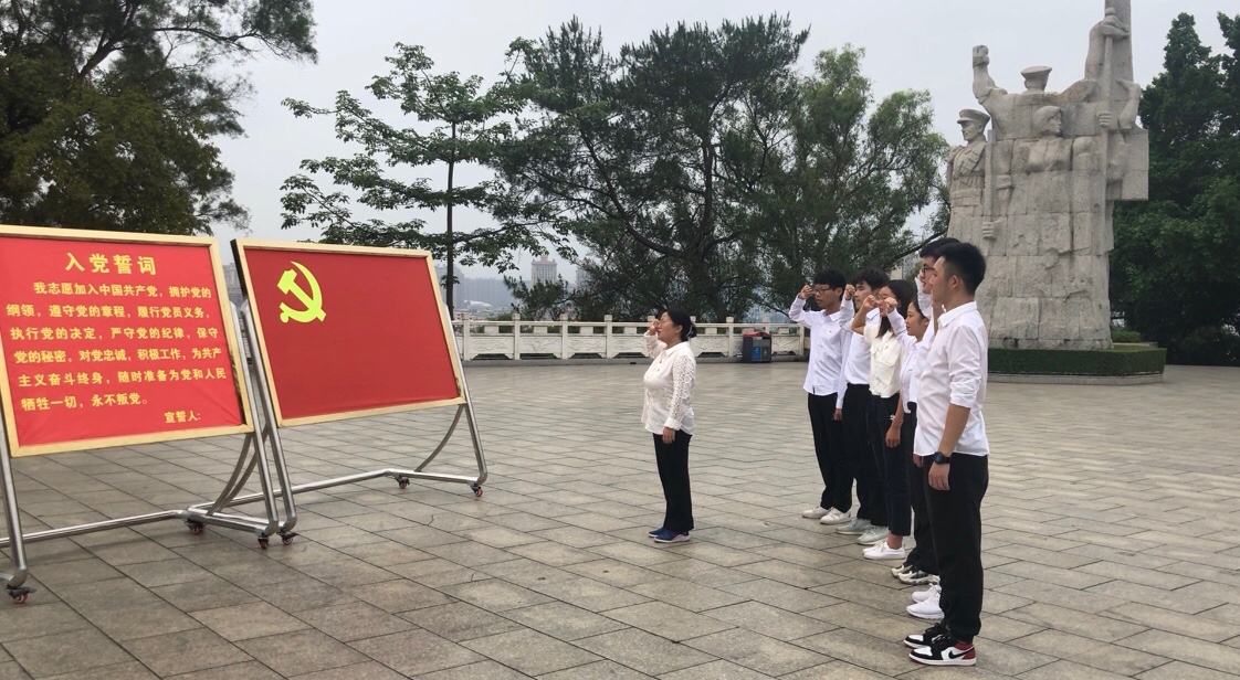 7月4日,“感悟百色起义精神”实践队员身着正装,手持党旗国旗,佩戴党员徽章和校徽,前往粤东会馆、百色起义纪念碑、百色起义纪念馆参观。