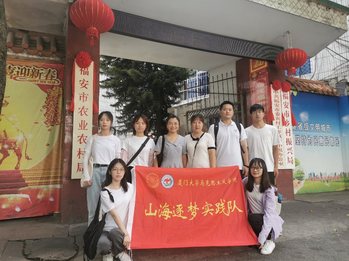 为深化四史学习教育,积极响应党的十九大所提出的乡村振兴战略,7月8日-11日,厦门大学马克思主义学院山海逐梦实践队赴福建省宁德市福安市开展实践调研活动。此次活动由肖盈老师带队,来自马克思主义学院、外文学院与航天航空学院的4本科生、2名研究生参与。期间,团队师生走访了福安市农业农村局、乡村振兴办公室、闽东革命纪念馆、闽东苏区纪念馆、罗江街道等单位,深入福安市下岐村、英平村、溪邳村、廉村、虎头村、大留村、柏柱洋斗面村、楼下村等地开展调研。