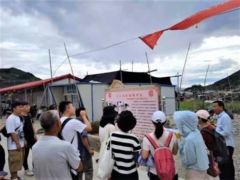 实践队亦深入实地,话乡村振兴之举措,思连家船变迁之原因。在连友华书记、董兆世主任的引导下,实践队走访了连家船民上岸定居的盐田乡北斗村,并来到“连船调研处”,登上连家船,直观体验连家船民的真实生活环境。据连友华书记介绍,为了解决连家船民问题,党和政府不仅推动船民上岸定居,更在经济、教育、就业等方面都提供了可持续性的重要保障。1998年4月21日,习近平同志回访连家船民,登上了村民杨智俤的连家船,心情沉重地说:“没有把连家船民及时搬上岸,我们对不起老百姓,这样的生活怎么能过呀!”此后,关于连家船民上岸的“连改”计划被大力推行。如今,连家船民已经悉数上岸、安居乐业,在海边拥有了整齐明亮的房屋。实践队员走在海蛎壳堆积而成的道路上,依稀可以感受到连家船民生活变迁之缩影。