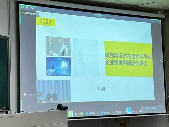 12月5日,华电新疆发电有限公司党委委员、纪委书记胡佐君应邀走进《中国马克思主义与当代》博士公共课课堂,围绕“唯物辩证法在自然科学和企业管理中的泛在表征”这一主题,于线上平台为同学们作了一场精彩的讲座。讲座由马克思主义学院肖斌副教授主持。