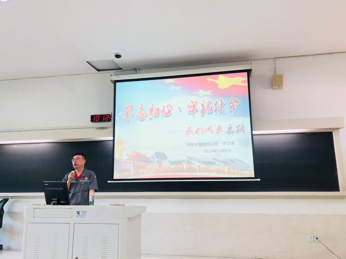 10月26日上午,中车长春轨道客车股份有限公司李万君应邀走进我校研究生思想政治理论课《中国马克思主义与当代》作题为“不忘初心、牢记使命——我的成长之路”的专题讲座。我校思明校区80余名博士生参加了本次讲座。讲座由我院肖斌副教授主持。