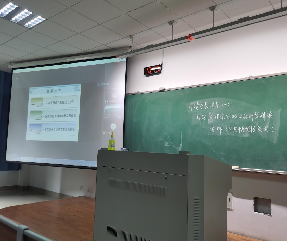 袁辉老师立足“新发展阶段”“新发展理念”“新发展格局”,从新发展理念的提出和定位、完整把握准确理解新发展理念、在实践中全面落实新发展理念三个方面展开,为同学们梳理了新发展理念的提出过程,以及党如何对新发展理念理解的逐步深化,阐释了新发展理念的科学内涵及其与马克思主义政治经济学的关系,提出了在新发展格局中全面贯彻落实好新发展理念的实践要点。