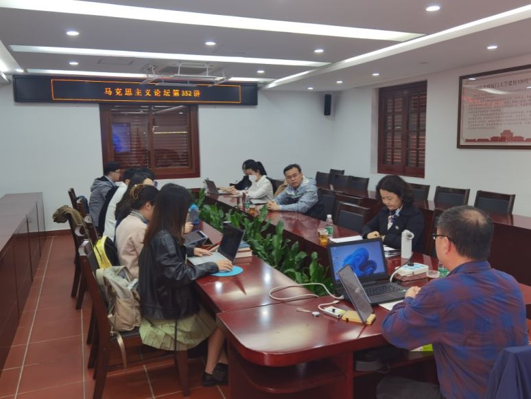 交流讨论环节,强乃社编审与师生围绕“中国共产党强大的组织动员能力”、“人民立场”、“科技哲学”、“妇女解放”及“中国哲学与西方哲学”等话题展开深入的交流讨论,在场师生深受启发。