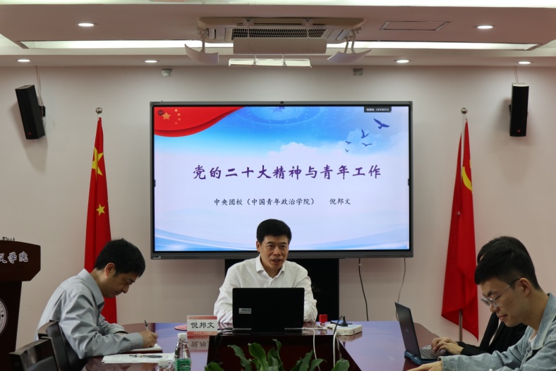 2023年4月27日上午,我院邀请中央团校(中国青年政治学院)党委书记、博士生导师倪邦文教授为师生作了题为“党的二十大和青年”的学术讲座。