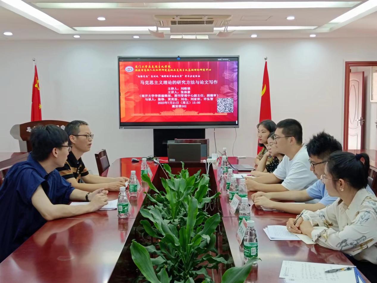 7月21日,厦门大学马克思主义学院“南强青马”系列之“编辑眼中的好文章”学术沙龙活动第六期在囊萤楼302室会议室顺利举办。南开大学学报编辑部、期刊管理中心副主任,副编审张栋豪作为活动的特邀嘉宾进行主题分享。沙龙活动由马克思主义基本原理教研部主任刘皓琰副教授主持,青年教师陈铮、黄美笛、刘也、刘家欢、许弘智与谈,学院部分硕博研究生参加。