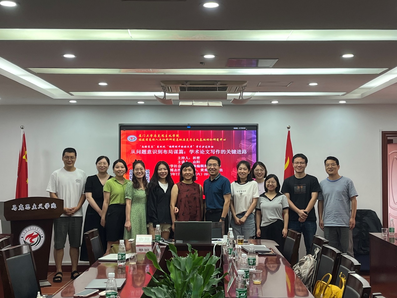 风雨难挡学术热情,应厦门大学马克思主义学院邀请,7月29日,吉林大学社会科学学报编辑部副编审由阳老师作为特邀嘉宾,在“南强青马”系列之“编辑眼中的好文章”学术沙龙活动第七期中进行了主题分享。沙龙活动在囊萤楼302会议室举行,由马克思主义学院副院长林密教授主持,青年教师傅志伟、黄秋萍、黄美笛、刘也与谈,学院部分硕博研究生参加。