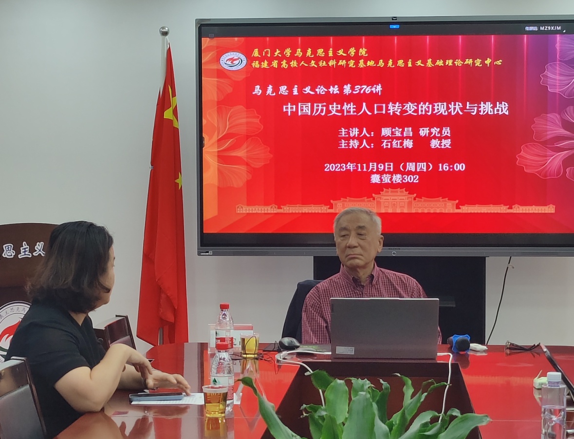 2023年11月9日下午,我院邀请到复旦大学人口与发展政策研究中心和复旦老龄研究院特聘研究员顾宝昌老师在囊萤楼302会议室作了题为“中国历史性人口转变的现状及挑战”的学术讲座。本次讲座由马克思主义学院党委书记石红梅教授主持,学院教师、硕博研究生积极参与了此次学习。