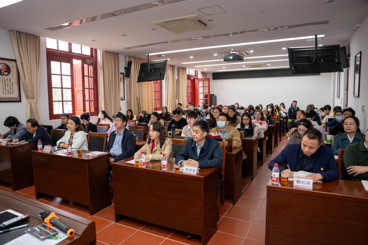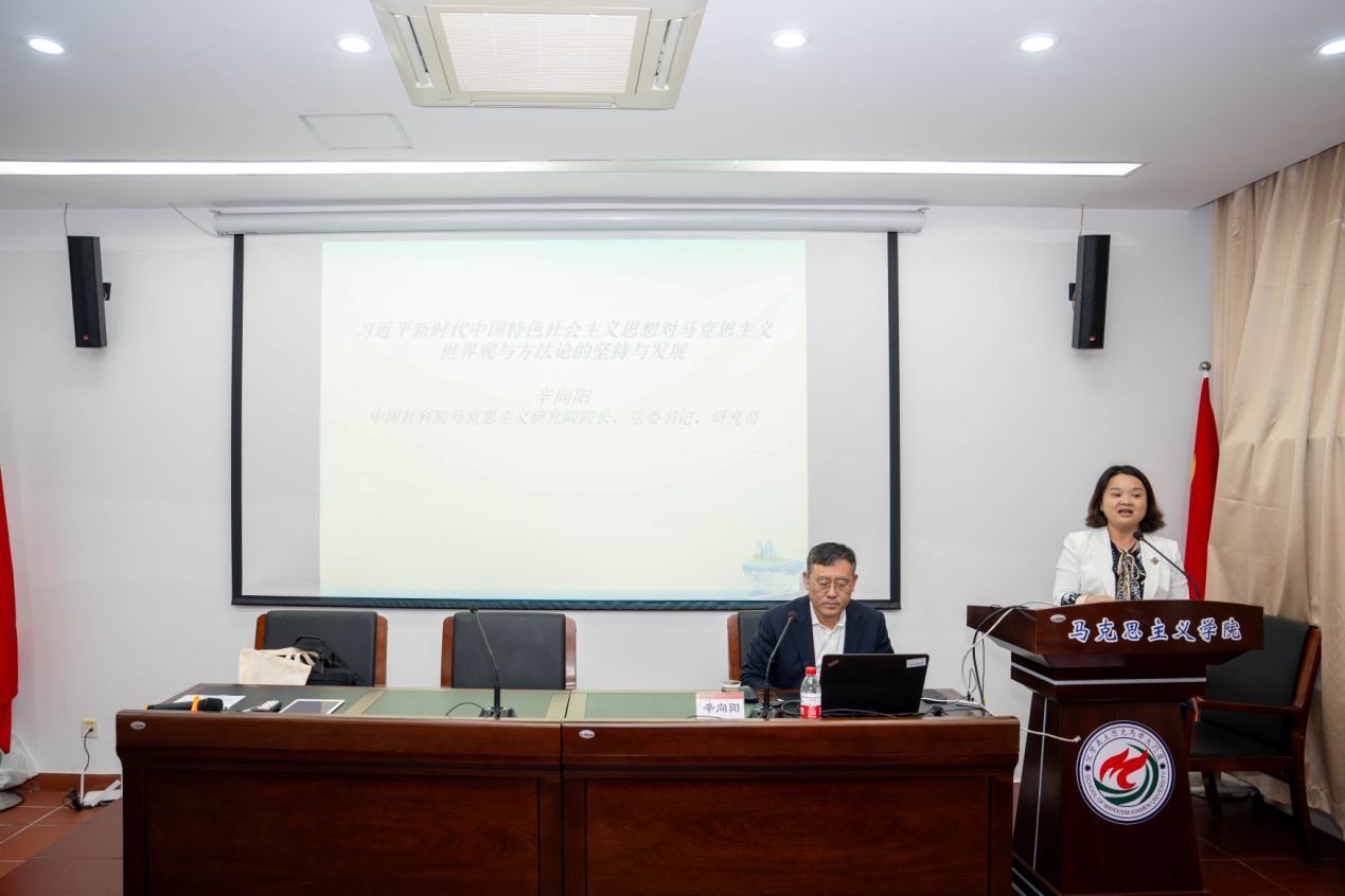 2023年12月6日下午,厦门大学南强学术讲座第1234讲在囊萤楼216报告厅举行。中国社会科学院马克思主义研究院党委书记、院长,第十四届全国人大代表、博士生导师辛向阳研究员以“习近平新时代中国特色社会主义思想对马克思主义世界观与方法论的坚持与发展”为题,为我校师生奉献了一场精彩的学术讲座。厦门大学党委副书记、马克思主义学院院长徐进功教授为辛向阳研究员颁授“南强学术讲座”纪念牌。厦门大学马克思主义学院党委书记石红梅教授主持授牌仪式和讲座。学院常务副院长张有奎教授、学院副院长原宗丽教授、校党委宣传部党支部、学院马克思主义中国化教工党支部及学院部分师生莅会学习。