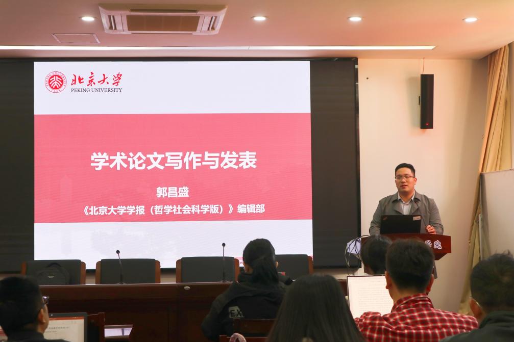 1月5日,厦门大学马克思主义学院“南强青马”系列之“编辑眼中的好文章”学术沙龙活动第九期在厦门大学囊萤楼216室顺利举办。《北京大学学报(哲学社会科学版)》编辑部编辑郭昌盛博士作为本次活动的嘉宾进行了主题为“学术论文写作的形式、实质与文献引注”的分享报告。本次活动由池骋老师主持,吴茜、朱东波、许弘智、黄秋萍、杨青梅、柯绍清等老师共同与谈,学院部分硕博研究生参加。