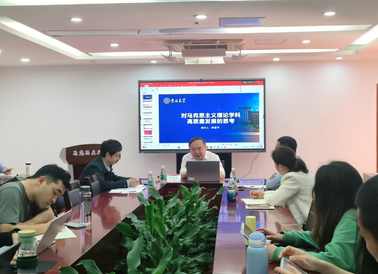 韩教授围绕马克思主义理论学科高质量发展的时代要求、基本要求以及具体对策等问题展开了论述。他指出,高质量发展是解决时代命题的关键,马克思主义中国化时代化蕴含着自身理论学科高质量发展的必然要求和内生动力,实现马克思主义理论学科高质量发展既是展现其学科发展的内在规律要求,也是表达新时代中国经济社会发展和聚焦世界百年未有之大变局理论解答的新需求。结合学科发展的时代要求和基本要求,他总结了马克思主义理论学科高质量发展的具体对策,马克思主义理论学科的发展要始终坚持人民至上的基本立场,加强高质量学科人才队伍建设和创新理论成果的学理化阐释,以此建成理论领域的支撑性学科,并引领建构哲学社会科学自主知识体系。