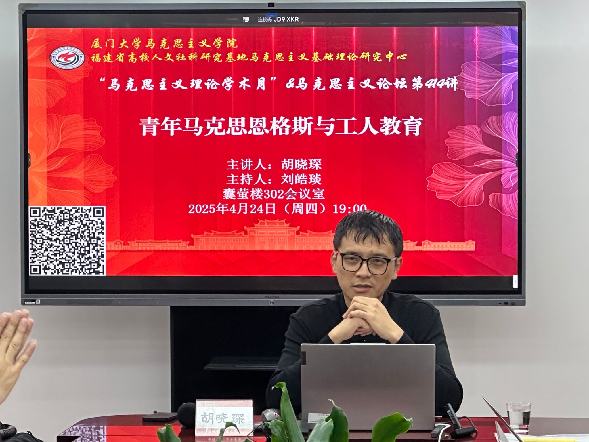 2025年4月24日,我院邀请到中共党史和文献研究院第五研究部马恩著作编译二处副处长、一级翻译胡晓琛博士在囊萤楼302会议室作了题为“青年马克思恩格斯与工人教育”的学术讲座。本次讲座由马克思主义学院刘皓琰教授主持,学院本科生与研究生积极参与。