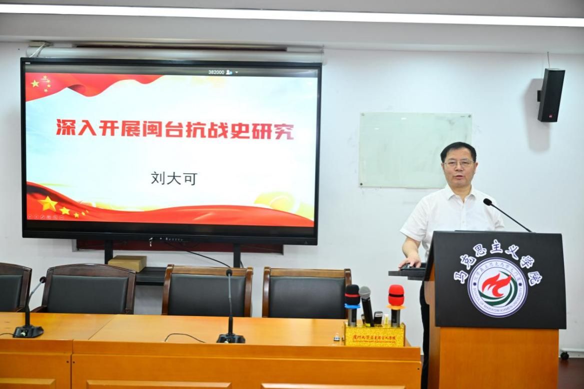 福建省委党史研究和地方志编纂办公室主任刘大可、厦门大学历史与文化遗产学院院长张侃作大会主旨发言。刘大可指出,深入开展闽台抗战史研究,“既有利于两岸人民铭记中华民族砥砺前行的艰辛岁月,又有助于进一步凝聚两岸‘一个中国’的共识,增强海峡两岸同胞的中华民族认同感”。张侃则以独特视角展现出抗战大后方经济领域的探索与努力,通过梳理女性经济学家张肖梅的生平,树立了微观人物史研究的典范。