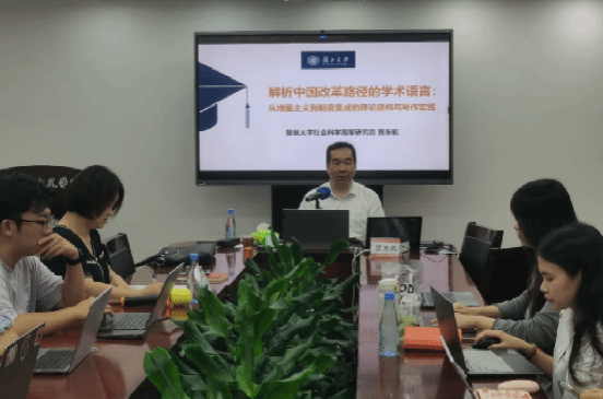 7月7日下午,我院邀请到复旦大学特聘教授、复旦大学社会科学高等研究院专职研究员、“全国基层政权建设和社区治理专家委员会”专家委员、马克思主义理论研究和建设工程重大委托课题首席专家贺东航教授在囊萤楼302会议室作了题为“解析中国改革路径的学术语言:从增量主义到制度集成的理论建构与写作技巧”的学术讲座。本次讲座由马克思主义学院党委书记石红梅教授主持,学院教师、硕博研究生积极参与了此次学习。