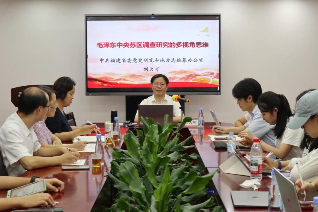 9月18日晚,我院邀请到中共福建省委党史研究和地方志编纂办公室主任刘大可在囊萤楼302会议室作题为《毛泽东中央苏区调查研究的多视角思维》的学术讲座。本次讲座由马克思主义学院党委书记石红梅教授主持,学院周雪香教授、史勤助理教授以及硕博研究生共同参与研讨交流。